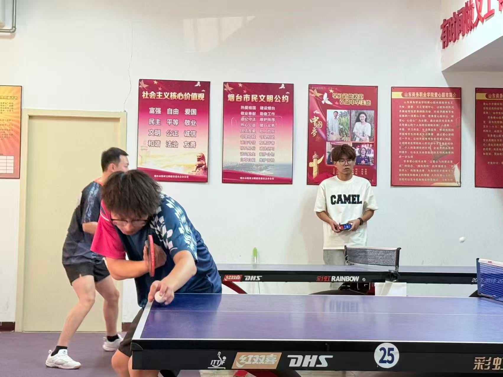 本次赛事为期三天,设有男子单打、女子单打及混合团体赛三大项目。赛场上,选手们身手敏捷、挥拍有力,削球、扣杀、弧圈球等精彩场面层出不穷,充分展现了我校学子昂扬向上的精神风貌和扎实的体育素养。赛场下,各学院啦啦队加油声、欢呼声此起彼伏,现场气氛热烈而有序。