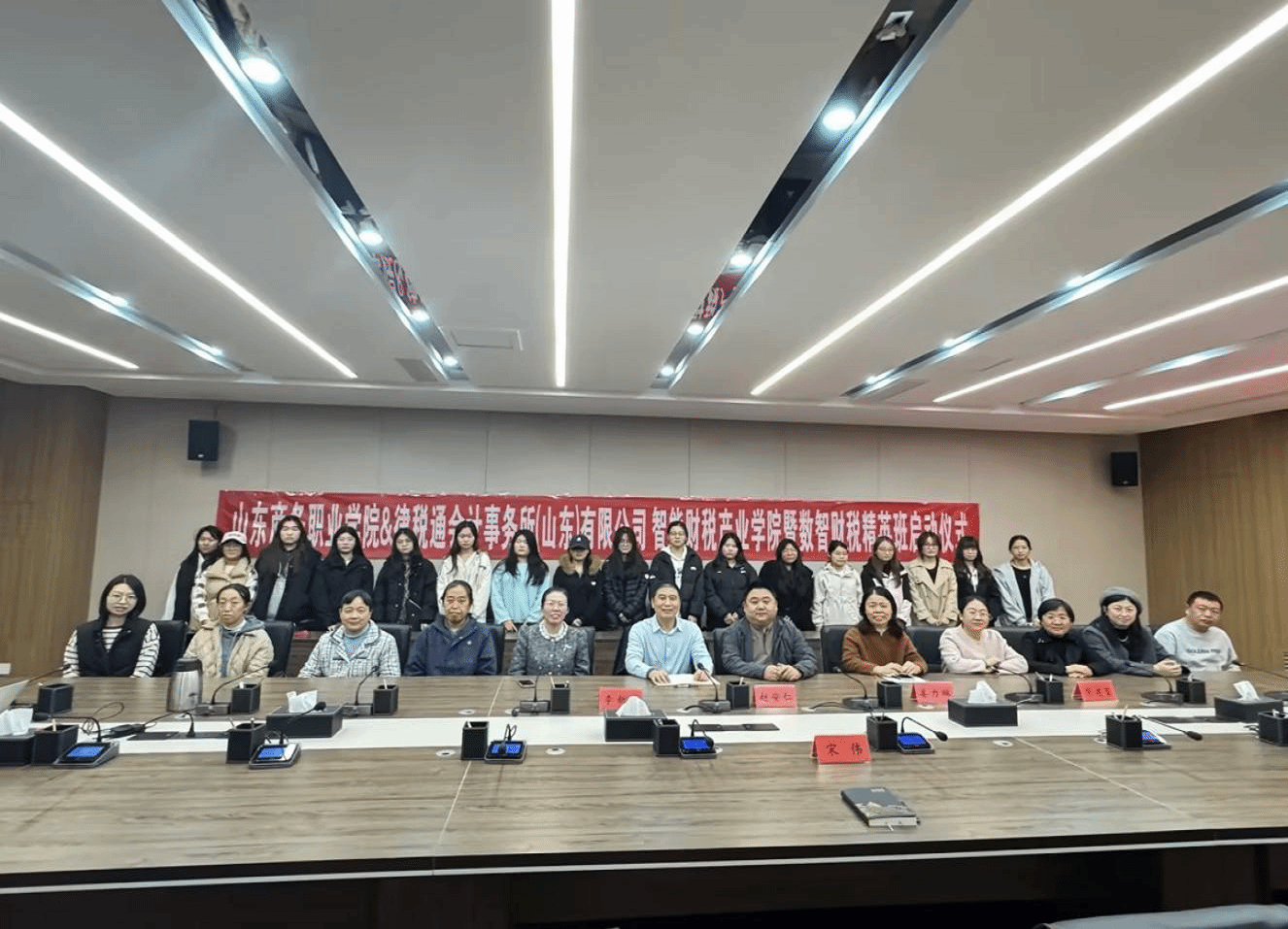 本站讯 为积极响应“数字中国”战略部署及职业教育产教融合政策,10月30日下午,会计金融学院与律税通会计师事务所(山东)有限公司联合举办的智能财税产业学院暨数智财税精英班启动仪式,在办公楼一楼会议室举行。会计金融学院党总支书记赵安仁、副院长姜力琳,律税通会计师事务所(山东)有限公司总经理宋伟,以及大数据与会计教研室教师代表和学生代表共同参加仪式。