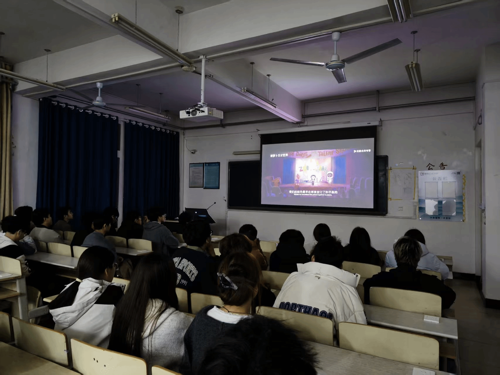 当晚7点,活动正式开始。主持人简要介绍活动背景时特别提到:“希望同学们能借这场光影之旅,暂时放下绘图板上的线条、计算纸上的公式,让心灵得到放松。”随后灯光渐暗,影片缓缓播放。现场氛围宁静而温馨,同学们全神贯注地沉浸在光影世界中,当看到主角克服类似“赶设计方案”的压力场景时,不少人露出会心的微笑,也有人陷入对自身学习节奏的思考。影片结束后,各班级以小组为单位展开讨论。轻松愉悦的交流氛围中,大家不仅收获了情感慰藉,更学到了贴合专业学习场景的心理调节方法。