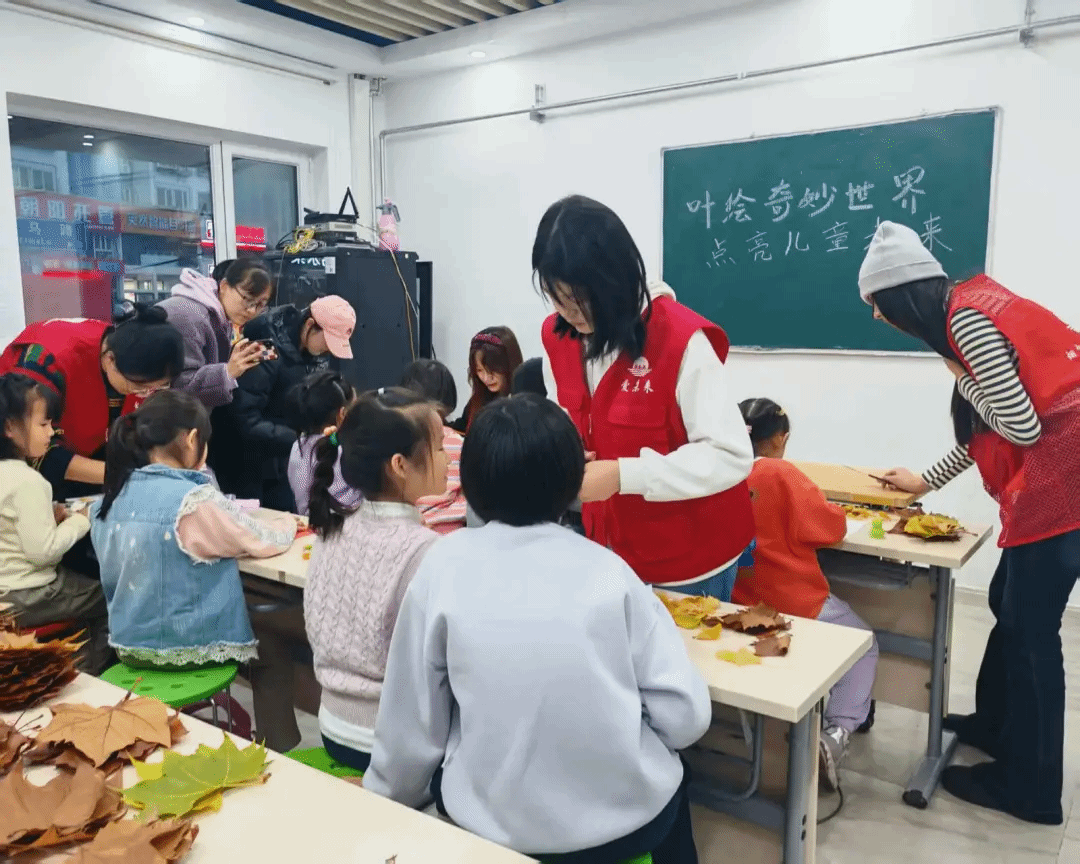 自今年7月双方共建大学生社会实践基地以来,艺术设计学院持续依托专业优势,将美育实践与社区服务相结合。本次树叶画活动不仅锻炼了孩子们的动手能力和创造力,也将生态文明的种子播撒在心田,是志愿服务与环保教育有机结合的生动实践。