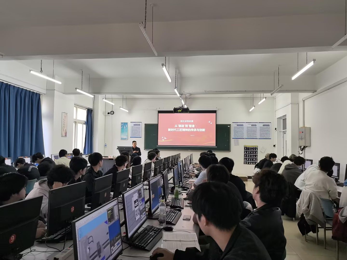 本站讯 近日,智能制造学院院长魏彦波以“从‘制造’到‘智造’:新时代工匠精神的传承与创新”为主题,为同学们带来了一场深刻而生动的专题思政课。他通过详实的案例和深入的分析,引导学生们理解智能制造时代下工匠精神的新内涵,激励大家在学习和未来的工作中,不断追求卓越,勇于创新,将个人理想融入国家发展的宏伟蓝图之中。