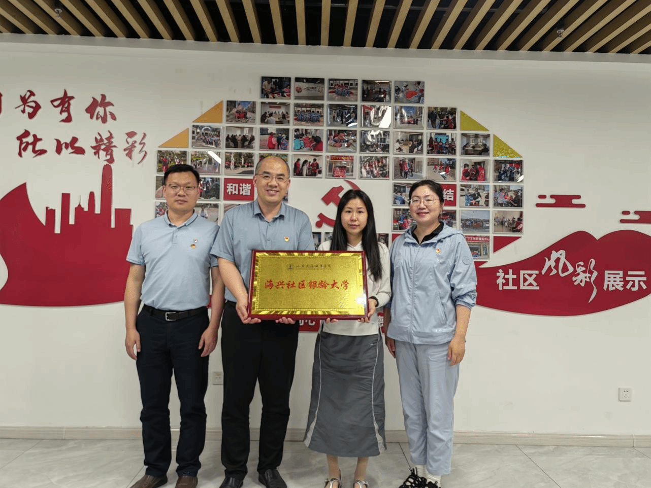 精准对接需求,打造“适老”服务品牌。针对社区老年居民“精神文化需求迫切、智能技术运用困难”的问题,党支部与海兴社区联合挂牌成立“山东商务职业学院海兴社区银龄大学”,每月开展 1次课程,涵盖智能手机应用、健康养生、文化艺术等领域,成为社区老人 “老有所学、老有所乐”的“幸福课堂”。