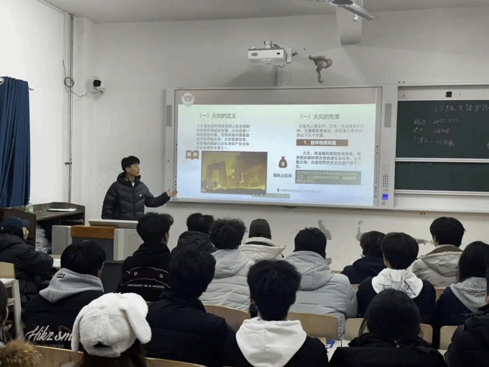 强化主题教育,筑牢思想防线。以班级为单位召开安全用火用电主题班会,通过展示违规电器、播放高校火灾案例,直观警示安全风险;辅导员现场讲解插线板规范使用、电器过载识别及触电急救知识,引导学生树牢安全责任意识。同时,组织师生观看消防警示教育片,依托“红船领航”党建宣讲团开展校园安全专题警示课,结合案例剖析与情景模拟,详解宿舍、实验室等重点场所安全规范,推动消防安全知识入脑入心。