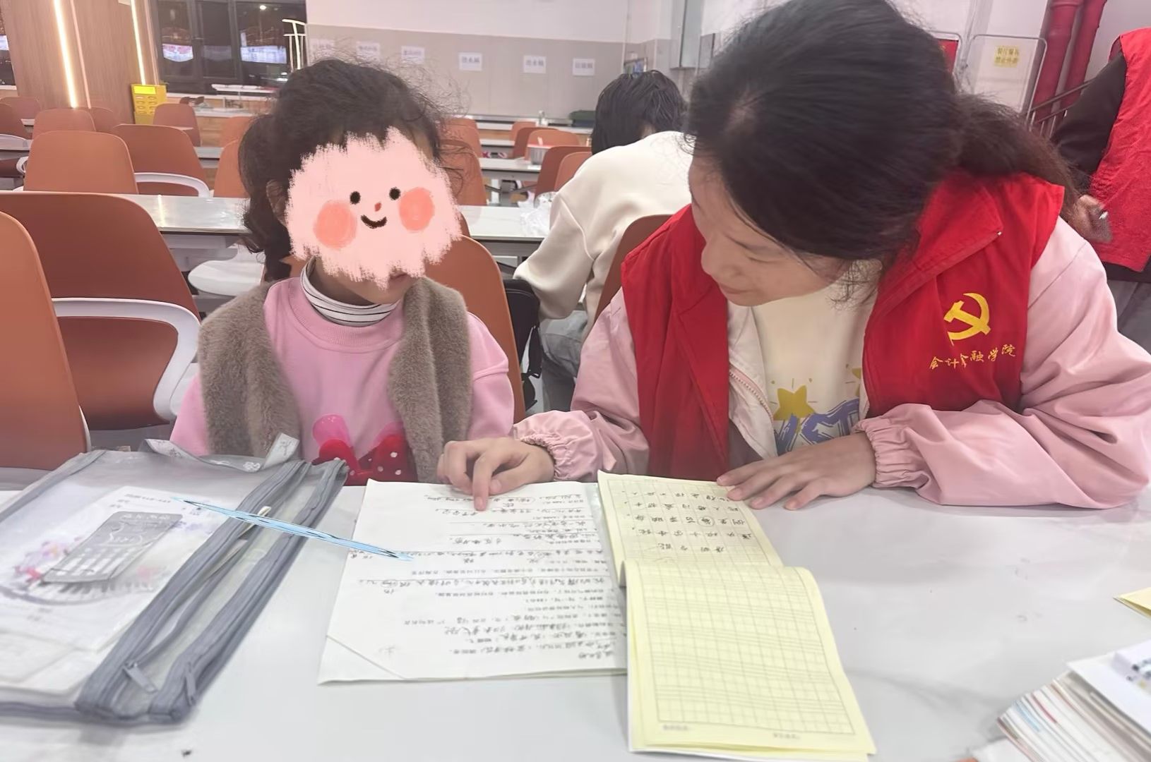 爱心辅导进食堂,情暖职工子女心。食堂作为师生就餐的重要场所,工作人员每日辛勤忙碌,往往难以兼顾子女的学业辅导。针对这一情况,学院每周五精心组织学习成绩优异的受助学生组成“扶苗公益志愿服务队”,利用傍晚及周末等课余时间,在食堂专属活动室为食堂工作人员子女提供一对一作业辅导服务。辅导现场,同学们耐心询问孩子的学习难点,从数学公式的推导到语文课文的解读,从英语单词的记忆到科学实验的原理,都细致讲解、悉心指导。同时,他们还分享自身的学习方法与成长经历,鼓励孩子们养成良好的学习习惯。“平时工作忙,辅导孩子作业总力不从心,有了这些大学生的帮助,孩子的作业效率高了,学习积极性也明显提升,真的太感谢了!”食堂工作人员李师傅的话语中满是感激。