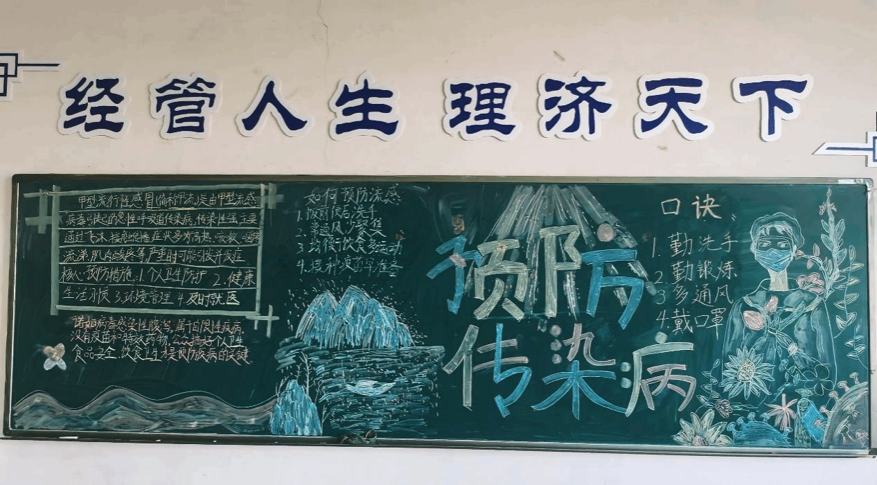 组织开展黑板报绘画竞赛,展现高发传染病的类型、传播途径、预防措施等内容,提高同学们对传染病的认知和防范意识,同时激发同学们的创作热情,增强学生的团队协作能力和健康素养。