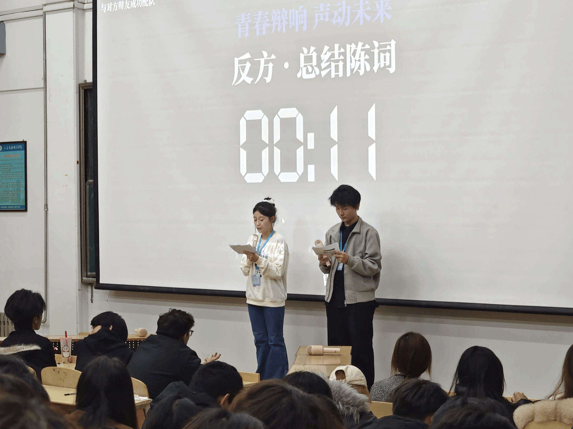 “青春辩响·声动未来”辩论赛激荡思维。 这场新颖的辩论赛成为本学期活动的亮点。辩手们围绕“AI时代,艺术设计更应注重民族性还是世界性?”“青年设计师的成长,个人努力比时代机遇更重要吗?”等紧扣专业与时代的辩题展开激烈交锋。比赛不仅锻炼了学生的思辨与表达能力,更在观点的碰撞中深化了他们对文化自信、个人价值与国家发展之间关系的理解,现场掌声不断,反响热烈。