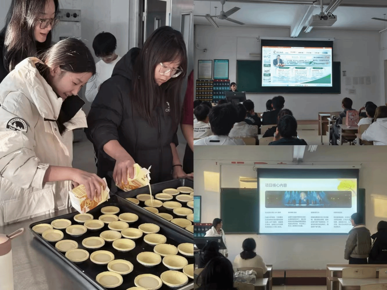 学院以学业帮扶为基础,以职业发展为导向,为困难学生搭建多元学习平台。邀请荣获国家奖学金、省政府奖学金的优秀学子开展经验交流会,学霸们围绕学业规划、专业学习、竞赛备考等内容倾囊相授,用自身奋斗经历激励困难学生树立目标、奋起直追。联合“大学生创客汇”举办“创客逐梦,模拟启航”模拟创业活动,通过项目构思、商业模式设计、路演融资等沉浸式体验,让学生熟悉创业核心流程,培养商业思维与创新能力,为未来职业发展拓宽路径。此外,学院精准对接食品专业特色,开展“食暖初心,助梦同行”美食烘焙活动,为困难学生提供健康膳食制作、食品创意摆盘等免费技艺培训,既提升了专业技能与就业竞争力,又让学生在实践中感受专业价值与劳动乐趣。