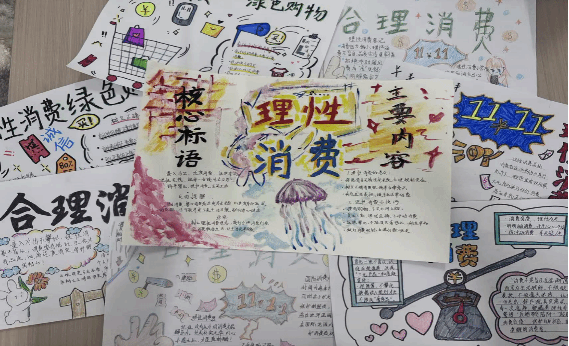 开展“勤俭节约,理性消费”主题手抄报活动,创作过程中,同学们充分发挥自己的想象力和创造力,以画笔和文字表达自己对勤俭节约、理性消费的感悟。一幅幅色彩斑斓、内容丰富的手抄报作品,不仅体现了同学们扎实的绘画功底,更展现了他们对勤俭节约、理性消费这一主题的深刻认识。