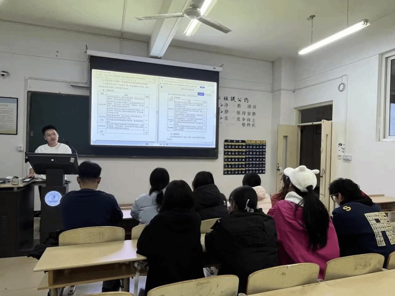 讲座中,指导老师首先解读第三届职业规划大赛的赛事规则与评分标准。从“自我认知、职业认知、规划目标、实施计划、评估调整、参赛作品”六大评分维度出发,结合粮油食品行业特色,强调“行业适配性”与“实操可行性”的重要性。“职业规划不是空中楼阁,要立足专业岗位需求,将个人优势与行业发展趋势紧密结合。”针对演讲环节,老师重点讲解了表达逻辑、时间把控与情感传递的技巧。同时提醒大家,演讲时要注重仪态端庄、语言流畅,避免过度依赖PPT,通过眼神交流与肢体语言增强感染力,让评委直观感受到对职业目标的坚定追求。在参赛材料准备方面,第二届山东省职业规划大赛获奖选手23食安2班张硕同学分享道:个人陈述报告要注重“数据化呈现能力”,职业规划书要“逻辑闭环”,从自我分析到目标设定,再到实施计划与风险评估,每一部分都要层层递进;佐证材料要“精准匹配”,优先选择与职业目标相关的技能证书、竞赛获奖证明、实习鉴定等,突出粮油行业所需的实操能力与职业素养。