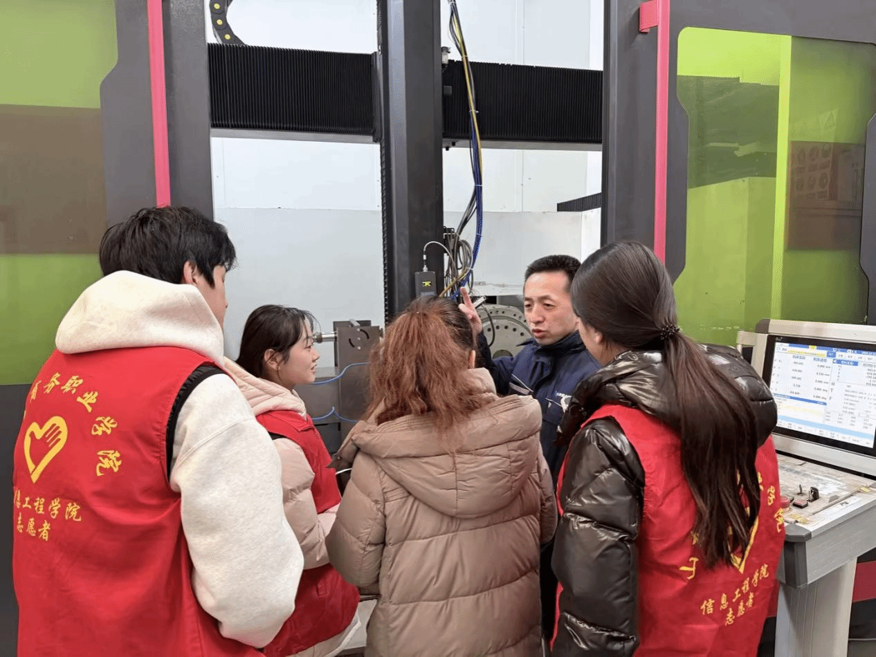 参观过程中,企业技术负责人向团队系统介绍了工业母机的技术特点、行业应用及未来趋势。团队成员结合所学专业知识,积极提问、认真记录,就高端装备的可靠性提升、智能化升级路径等议题与企业人员展开热烈讨论。企业方对团队展现出的专业素养和务实态度给予了充分肯定,并鼓励师生将理论知识与产业一线需求紧密结合。