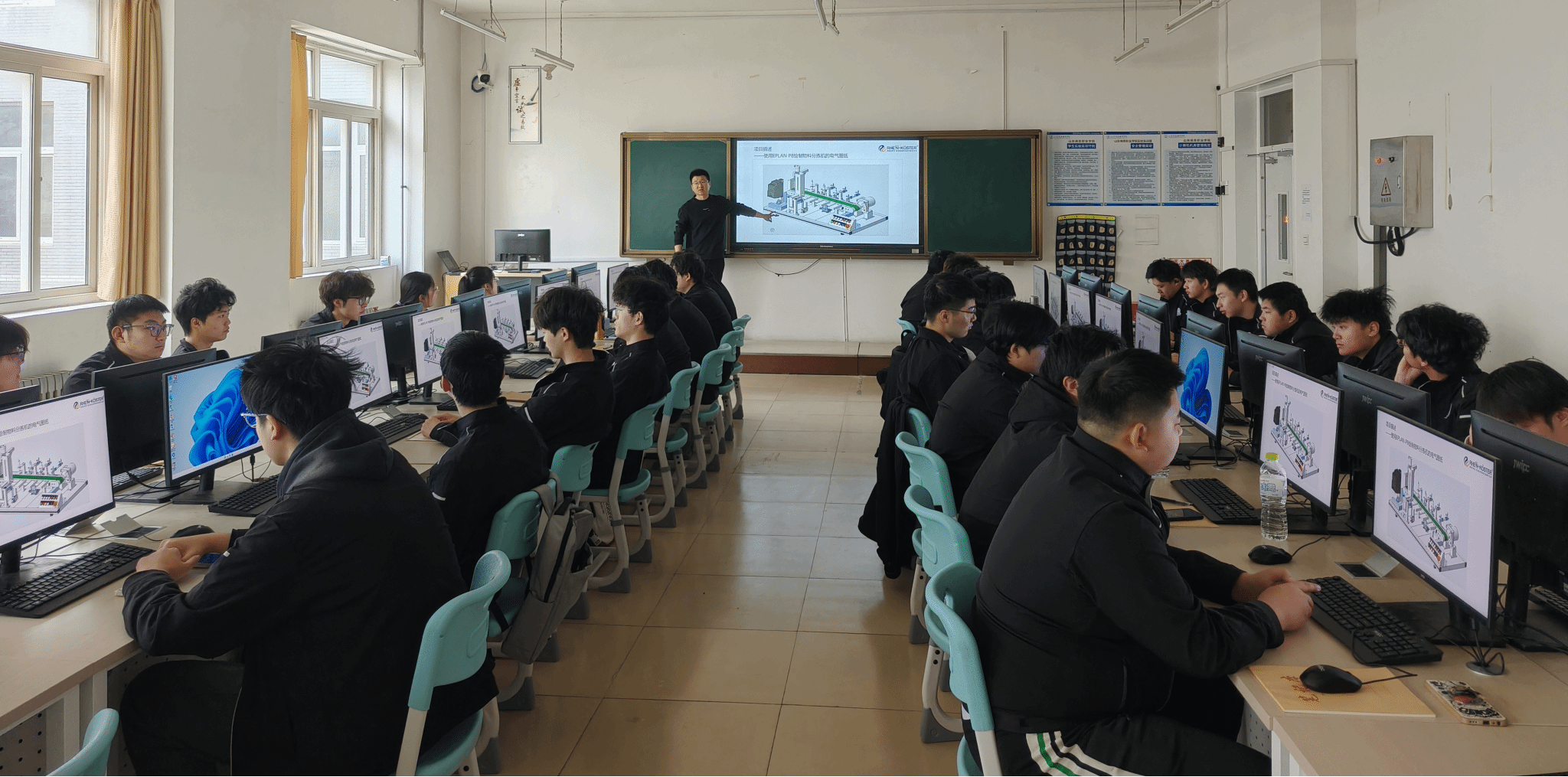 本站讯 为深化产教融合、校企协同育人,切实以引企入校举措打通人才培养与产业需求壁垒,培育适配智能制造产业发展的新质工匠,近日,智能制造学院锚定职业教育育人核心,主动引企入校,联合山东莱茵科斯特智能科技有限公司,为机电一体化技术专业量身打造的《电气绘图》专项实训正式开班,以校企深度联动的教学实践,推动产教融合落地见效。