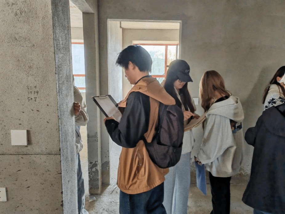 量房是室内设计工作流程的首要环节,也是检验学生专业基本功的“试金石”。相比校内模拟训练,真实工程现场要求学生综合考虑建筑结构、空间尺度及施工条件等多重因素,这对培养严谨细致、精益求精的工匠精神具有不可替代的作用。实训过程中,学生分工明确、配合默契,认真核对每一项数据。一名参与实训的学生说道:“亲手测量每一个尺寸,将来画出的CAD户型图才更有底气。这次活动让我真正理解了课堂理论在实际工作中是如何应用的。”专业教师王海涛表示,量房数据的精准度直接决定后续方案设计的可行性,学生在真实项目中建立起来的“数据意识”和“规范意识”,是课堂无法完全替代的宝贵收获。