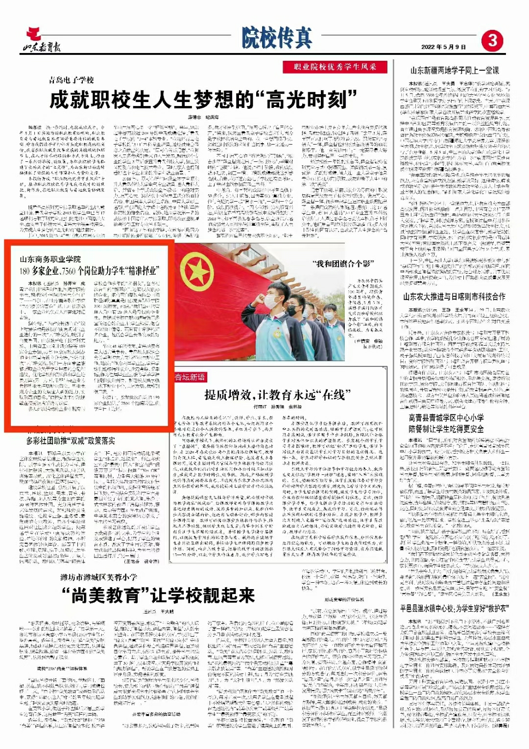 “我们非常看好智能制造学院的学生,想把这个学院的学生全‘包’了……”近日,在山东商务职业学院“书记校长访百企”线上对接活动中,一家企业的负责人兴奋地对记者说。