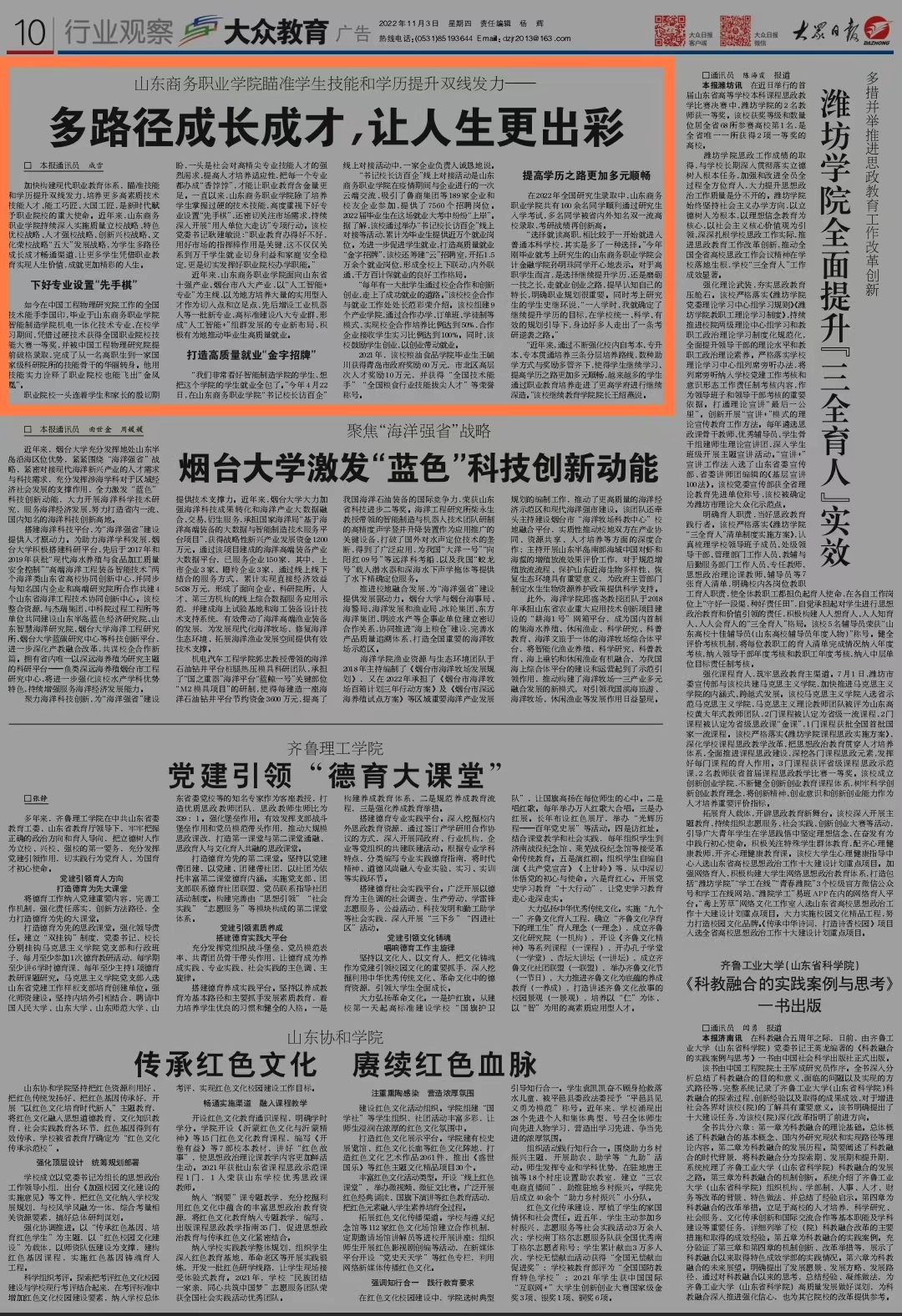 加快构建现代职业教育体系,瞄准技能和学历提升双线发力,培养更多高素质技术技能人才、能工巧匠、大国工匠,是新时代赋予职业院校的重大使命。近年来,山东商务职业学院持续深入实施质量立校战略、特色优校战略、人才强校战略、创新兴校战略、文化荣校战略“五大”发展战略,为学生多路径成长成才畅通渠道,让更多学生凭借职业教育实现人生价值,成就更加精彩的人生。