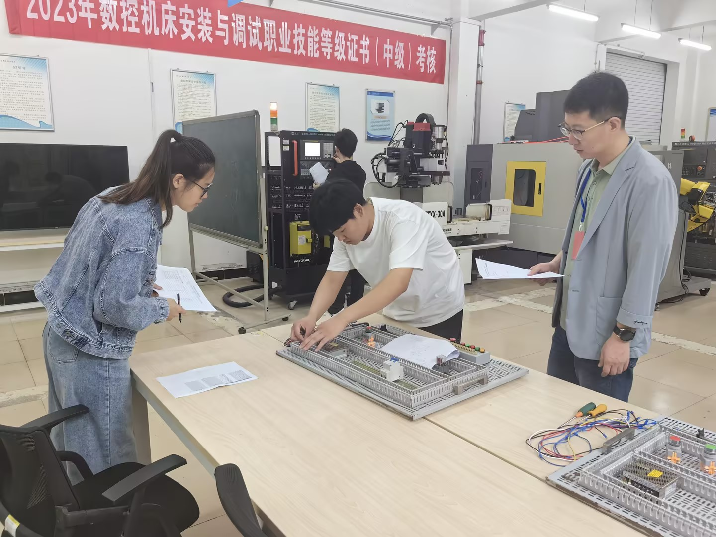 考核分为理论和实操两部分。理论考核涵盖数控机床机械和电气原理、机床故障维护、机床安装与调试基础知识等内容,主要考查考生基础理论学习掌握情况;实操考核要求考生根据给定电气图纸完成机床电路选件及配线,根据机床报警信息处理设备故障,完成对机床精度检测和主轴零部件装配等内容,主要考核考生数控机床安装与调试的动手实践能力。