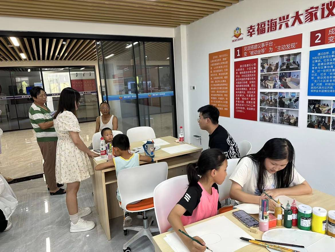 本站讯 为深入推进“双报到”工作,培养学生的社会责任感和创新能力,结合学院暑期“三下乡”工作要求,7月15日下午,艺术设计学院学生党支部教师与学生志愿者走进海兴社区文化活动中心,组织开展“党旗映社区,画笔绘幸福”志愿服务活动。