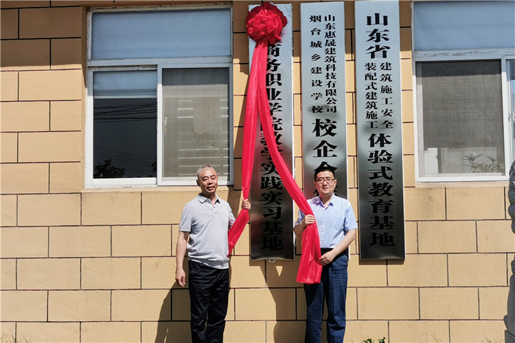 本站讯 6月6日下午,山东商务职业学院建筑工程学院和山东惠晟建筑科技有限公司,在栖霞举行了教学实践实习基地揭牌暨校企战略合作签约仪式,山东商务职业学院建筑工程学院副院长董青、朱峰及山东惠晟建筑科技有限公司总经理潘涛出席活动现场。