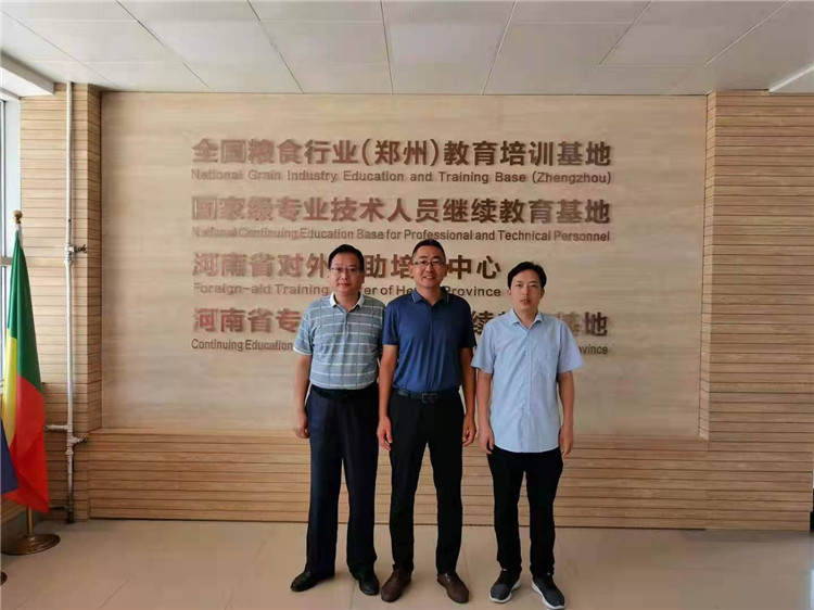 本站讯 7月5日,我校国家粮食和物资储备行业示范性高技能人才培训基地办公室主任刘华鹏到河南工业大学参观学习,与河南工业大学粮食和物资储备培训学院副院长李国仓、全国粮食行业(郑州)教育培训基地副主任钱向明座谈交流。