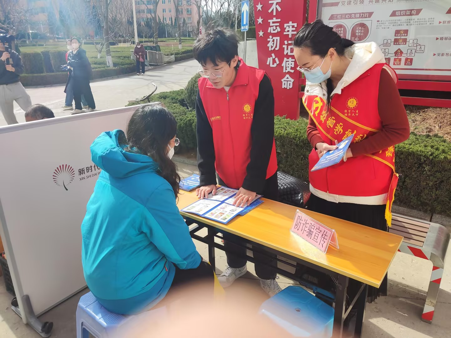本站讯 3月25日,经济管理学院党员教师到高新区航天小区开展“双报到”活动,为小区居民开展网络购物防诈骗宣传。