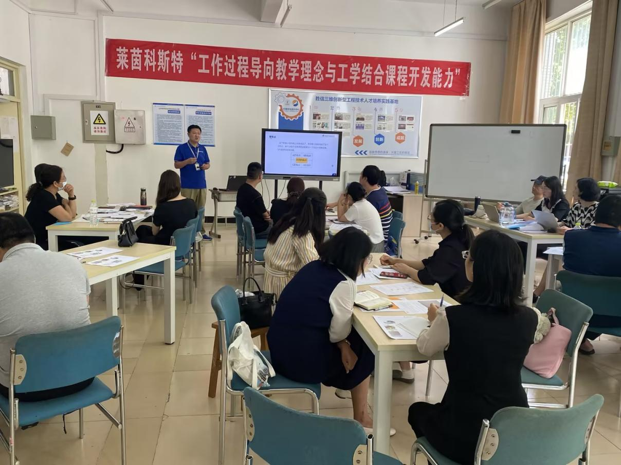 本次培训邀请了莱茵科斯特的专家来校,为教师进行培训指导,从“以职业能力培养为导向的课程组织设计(教学方法)”“德国双元制完整行动模型的分析”“选取典型案例以职业行动过程为导向的活页式教材开发分析与设计”等模块进行了专业详细的讲解。教师们积极参与到培训之中,通过实际操作,更深层次地了解了经典双元制教学方法和活页式教材的开发与设计等内容,并就学习心得进行了研讨、交流与分享,从中获得了新的教学思路与方法,有效推动了教育教学改革。