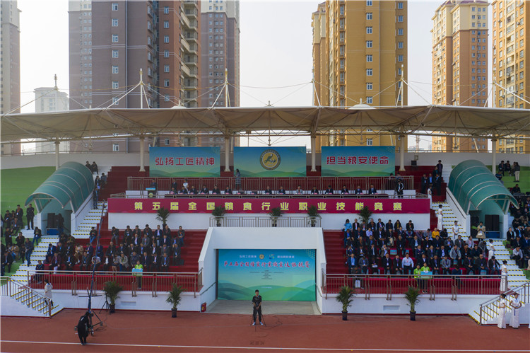 本站讯 10月24日下午,第五届全国粮食行业职业技能竞赛在山东商务职业学院田径体育场隆重开幕。山东省人民政府副省长于国安出席开幕式并致辞,中国就业培训技术指导中心党委副书记刘文彬,中国财贸轻纺烟草工会党组成员、一级巡视员芮宗金,山东省粮食和物资储备局党组书记、局长王伟华,竞赛组委会、山东省粮食和物资储备局、山东省人力资源社会保障厅、山东省总工会、烟台市政府和山东商务职业学院相关负责同志出席开幕式。国家粮食和物资储备局党组成员、副局长,第五届竞赛组委会主任委员黄炜主持开幕式。