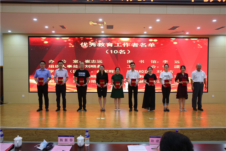 王伟存宣读学校关于表彰“教书育人奖”获得者和优秀教育工作者的决定。