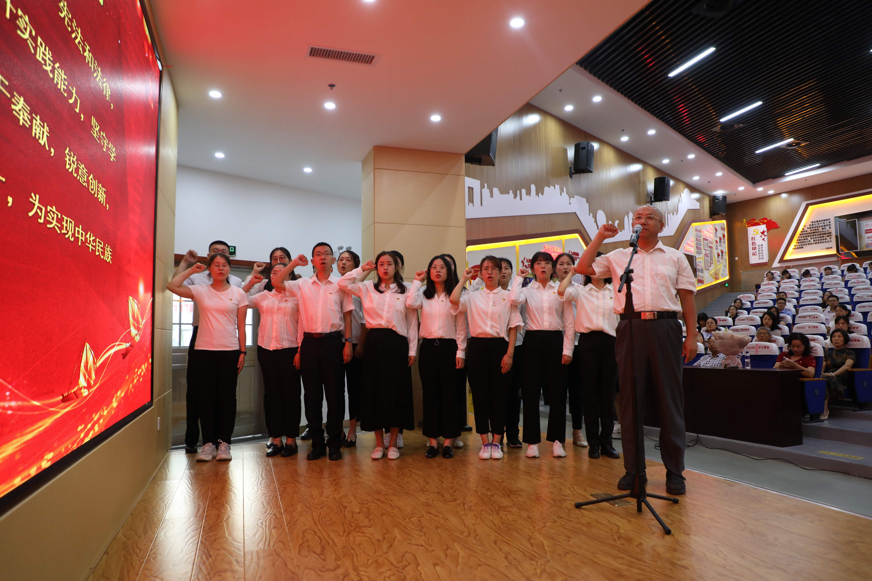 陶传蔚带领2020年全体新入职教师面对国旗举行了庄严的入职宣誓仪式。