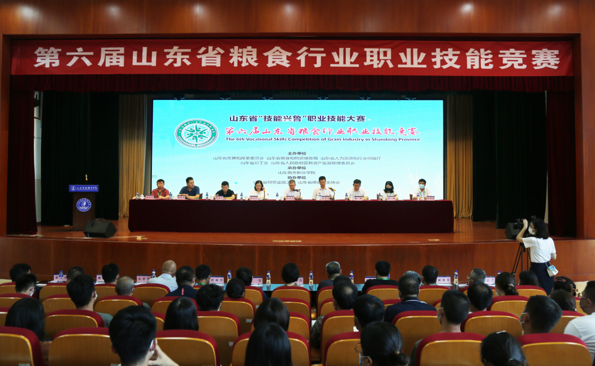本站讯 8月15日下午,山东省“技能兴鲁”职业技能大赛——第六届全省粮食行业职业技能竞赛开幕式在我校音乐厅举行。省粮食和储备局党组成员、副局长、二级巡视员刘开田,我校党委书记耿建敏,省委省直机关工委群众工作部(统战部)副部长秦峰,省发展改革委经贸处二级调研员高建军,省发展改革委人事处副处长吴杨,省财贸金融工会二级调研员薛胜利,省国资委二级调研员高秀斌,省粮食行业协会会长李江宁出席开幕式。