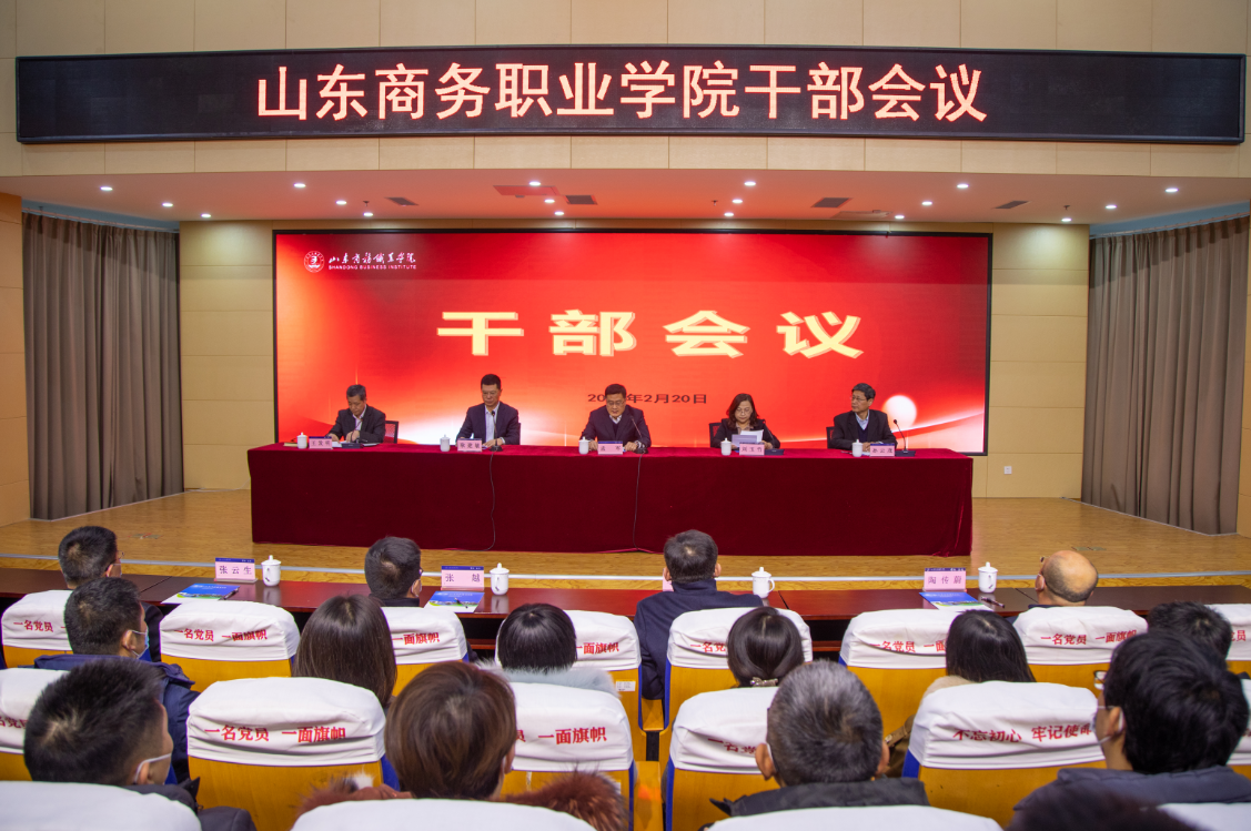 本站讯 2月20日,我校在党性教育基地召开全校干部会议,宣布省委关于学校主要负责同志调整的决定。省粮食和物资储备局党组成员、副局长孟军主持会议并讲话,省粮食和物资储备局人事处处长刘玉竹宣读省委决定。学校领导班子成员,各部门副科级以上干部、民主党派教师代表、各二级学院教师代表等参加会议。