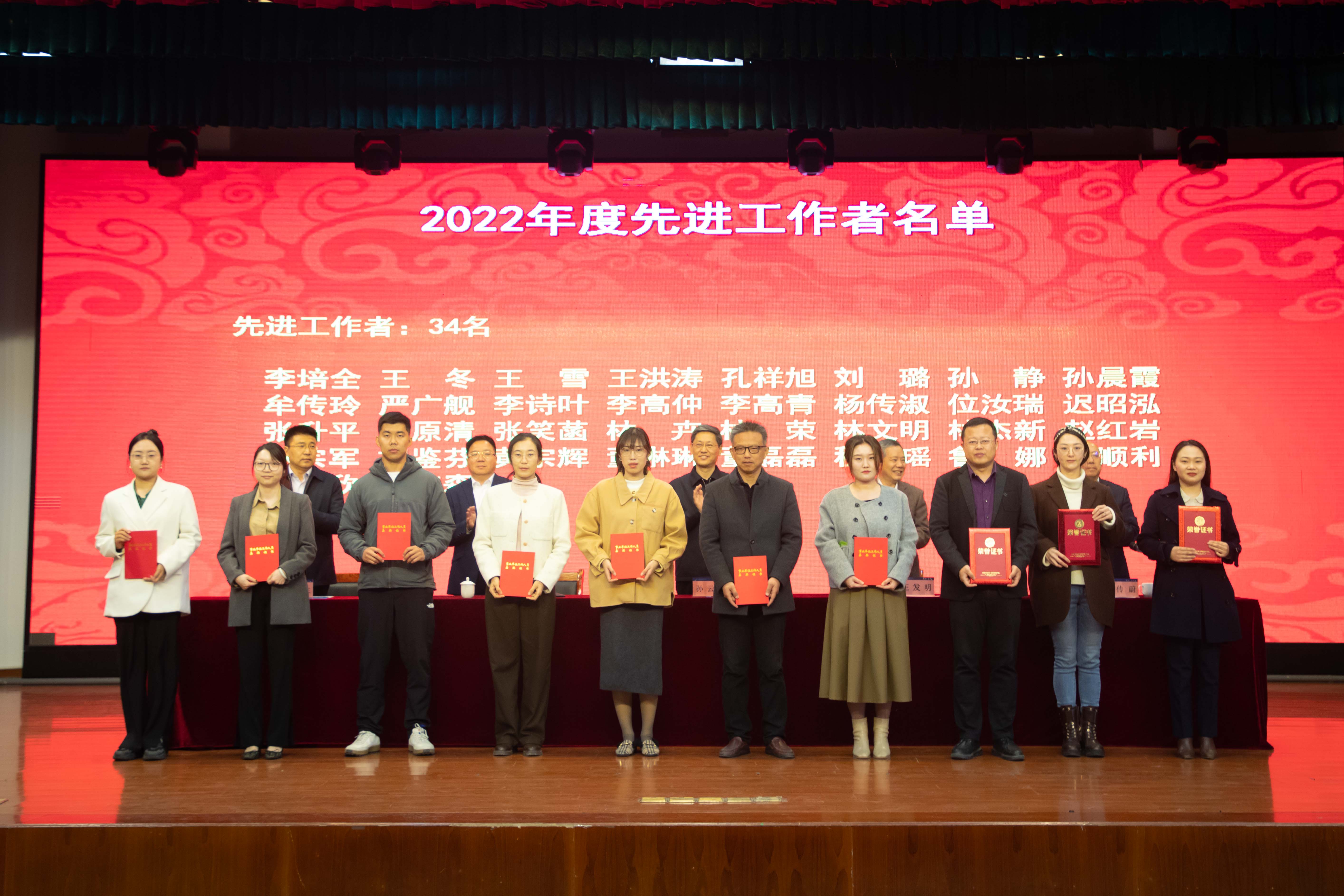 本站讯 凝聚发展共识,激发奋进动能。3月23日下午,我校在音乐厅召开2022年度总结表彰暨2023年工作动员部署大会。学校党委领导班子出席会议,全体教职工参加会议。会议由党委副书记、纪委书记张越主持。