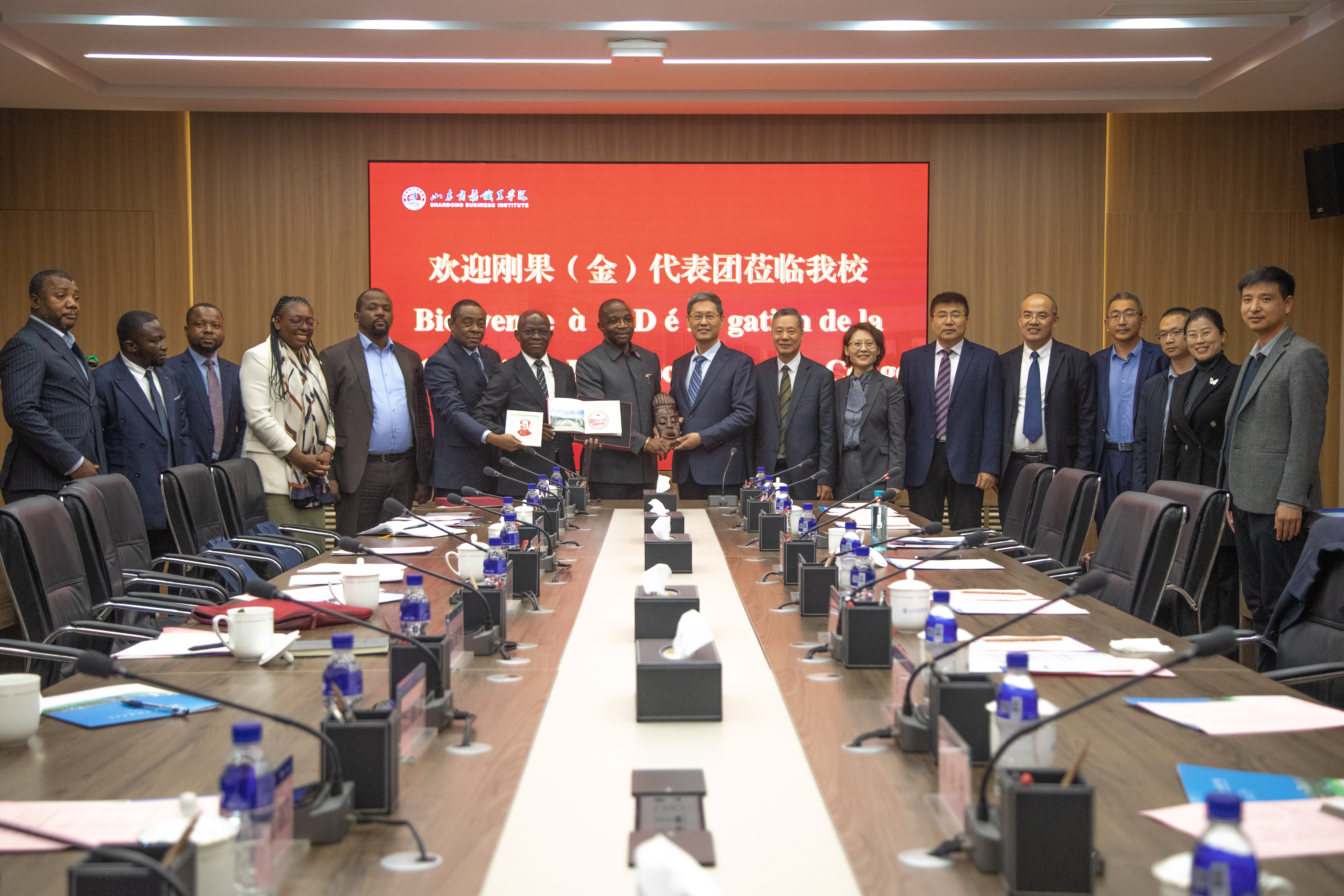 本站讯 11月23日,刚果(金)职业培训部部长埃基拉·利孔比奥·马克、国民教育与新公民部副部长凯扎穆德鲁·穆西西里·让·皮埃尔、刚果(金)驻华大使馆一等秘书坦比·赞贝拉·亨利一行11人来校访问交流,烟台市人民政府外事办公室副主任杨学萍陪同访问。学校党委书记孙云茂,党委副书记、校长王发明,党委委员、副校长张云生,各学院负责人陪同来宾参观学校实训中心并出席会议。会议由王发明主持。