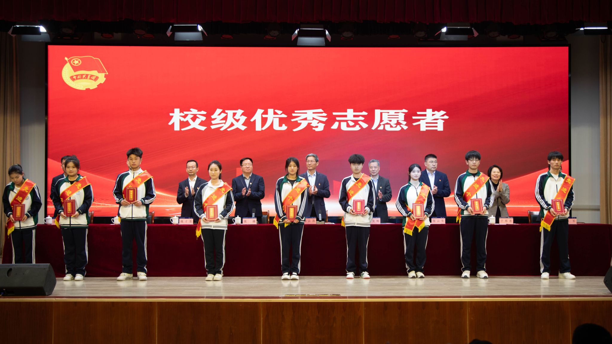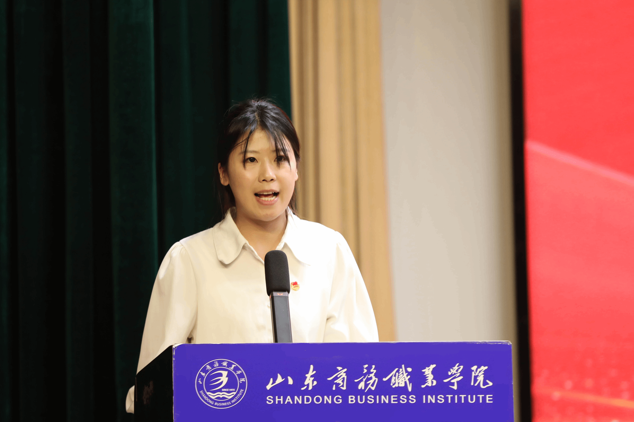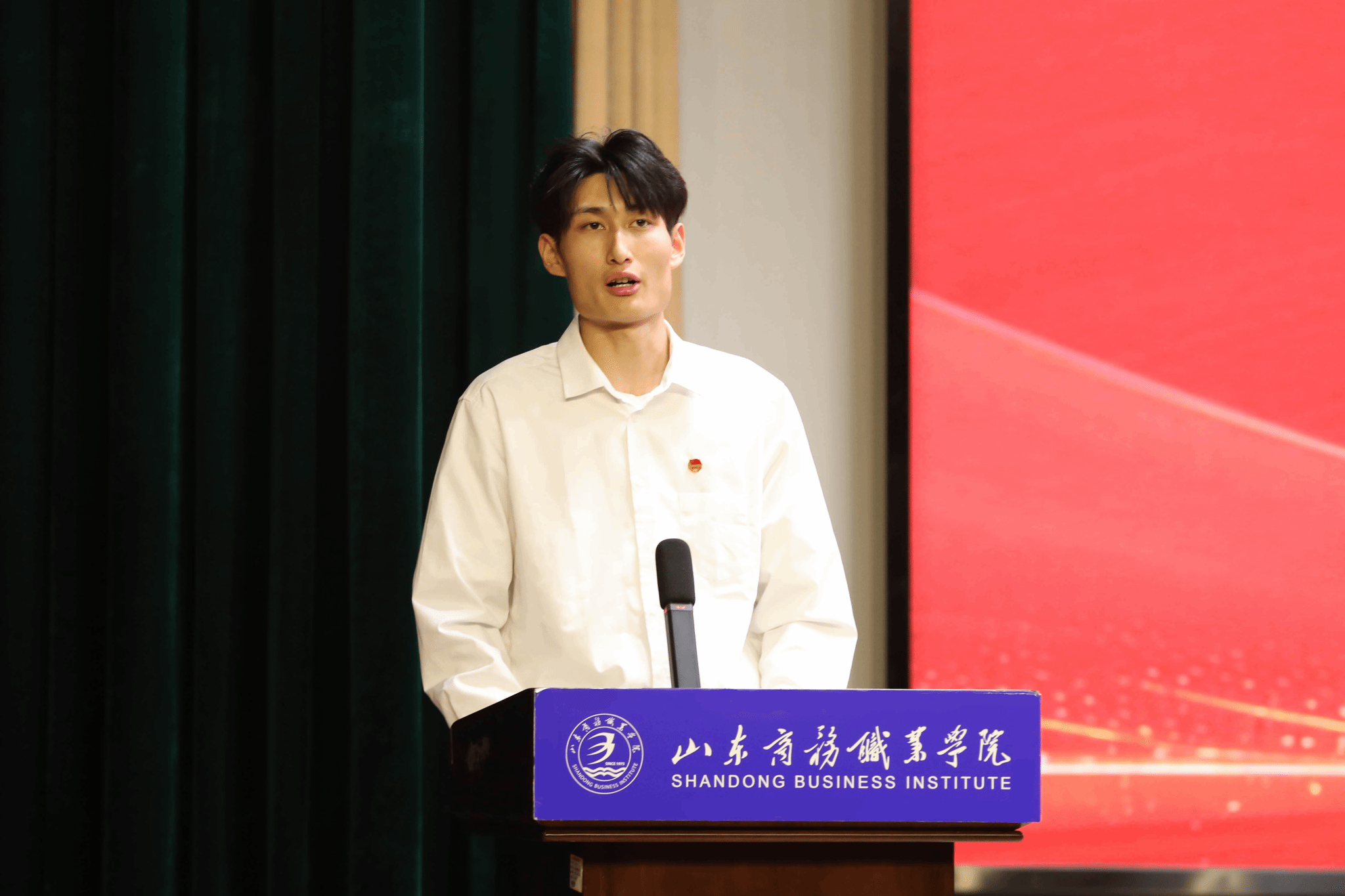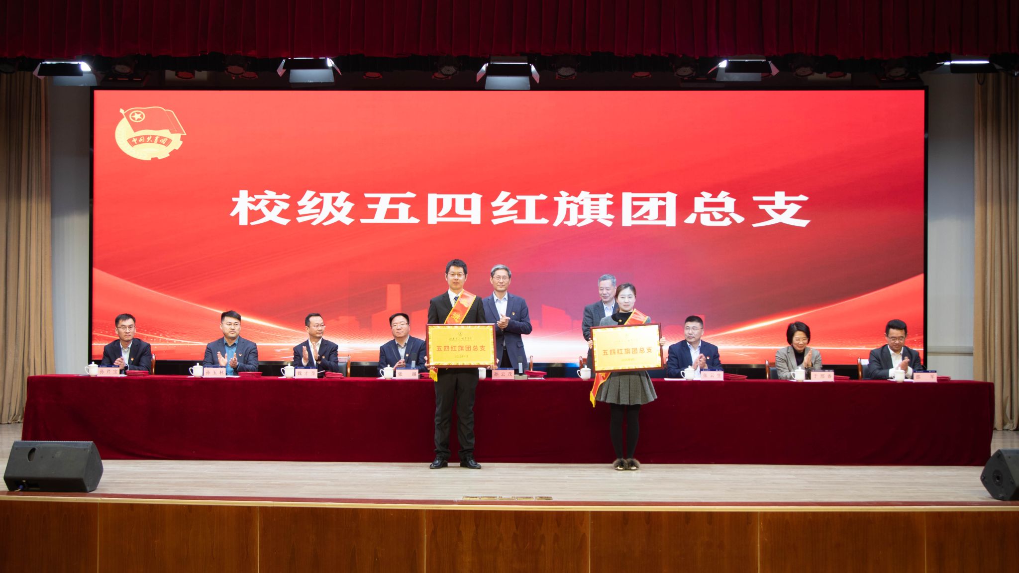 学校团委杨建辉同志宣读了《关于表彰2024年度共青团先进集体和个人的决定》等文件,主席台领导依次为“五四红旗团总支”“五四红旗团支部”“优秀团干部”“优秀团员”“优秀志愿者”等获奖代表颁发奖牌和证书。建筑工程学院团总支书记巩斌、信息工程学院刘霂源同学、粮油食品学院刘磊同学分别作为先进集体、优秀团干部和优秀志愿者代表发言,分享了他们在团学工作、志愿服务中的成长经历,展现了新时代商务青年的责任担当和青春风采。