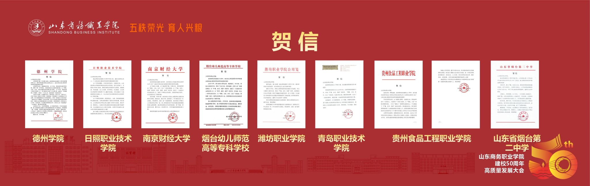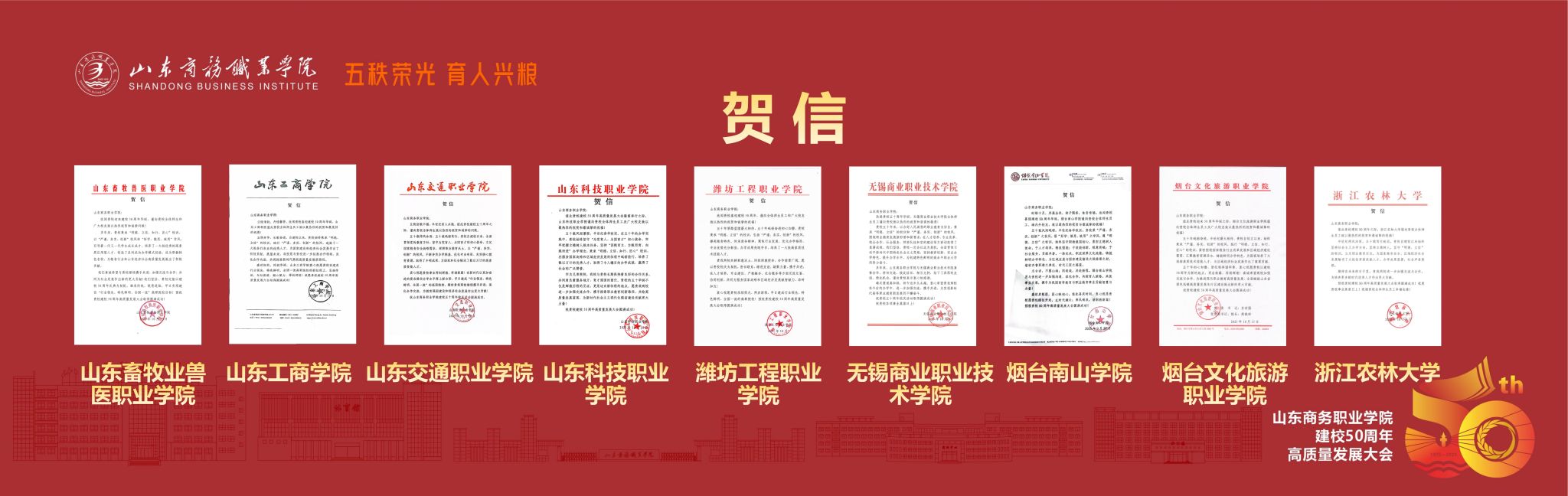 管恩文强调,山东是职业教育大省强省,是全国首个部省共建的国家职业教育创新发展高地、首批部省共建省域现代职业教育体系新模式试点省份,希望山东商务职业学院以建校50周年为契机,牢牢把握职业教育的政治属性、人民属性和战略属性,坚守职教初心,坚持特色办学,坚定不移服务国家重大战略和区域高质量发展,心怀国之大者,扎根齐鲁大地,融入行业产业,不断提高人才培养质量和综合办学水平,为教育强国建设和全省经济社会发展作出新的更大贡献。