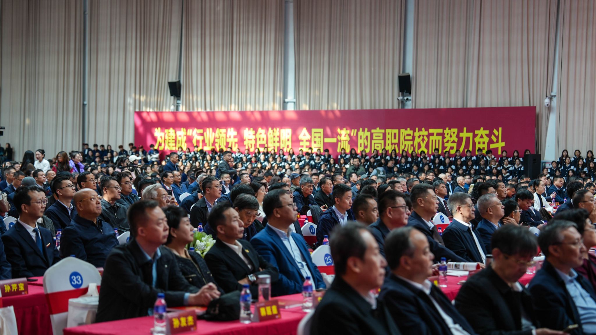 参加大会的还有山东省粮食和物资储备局原领导,兄弟院校领导,校友代表,合作企业代表,学校原领导,离退休老教师代表,现领导班子成员,全体教职员工和学生代表等。大会期间,学校还收到了来自25个省内外友好单位和院校发来的贺信。大会通过学校官方媒体账号全程直播,线上师生频繁互动,收到23.3万余条点赞评论,广大网友纷纷表达对学校建校50周年的热烈祝贺。