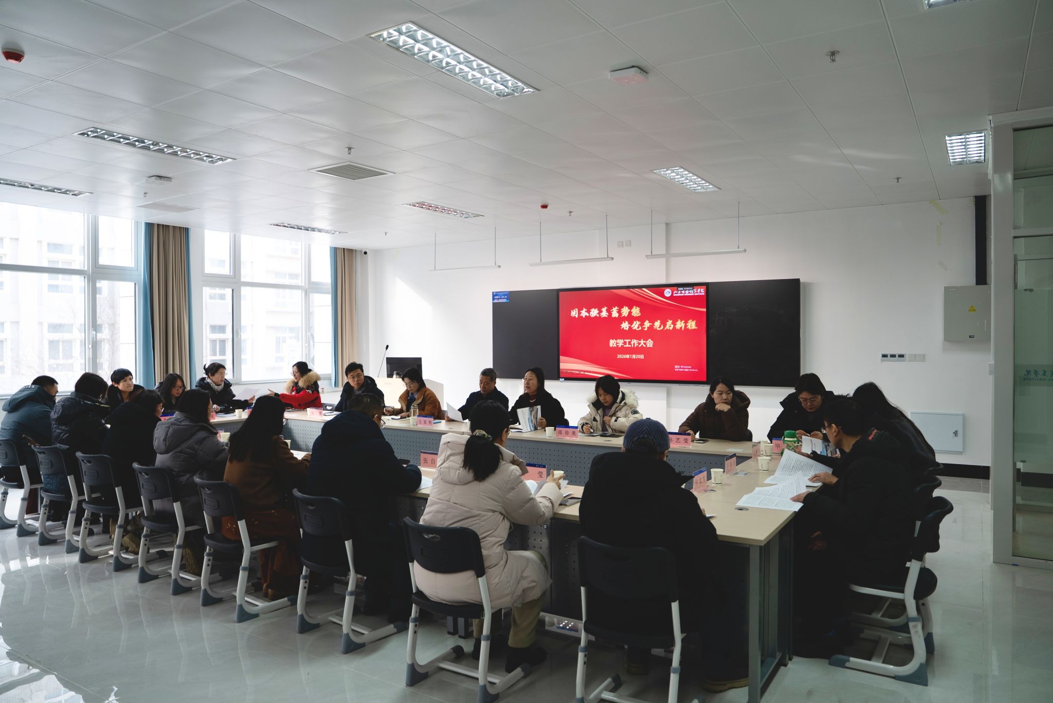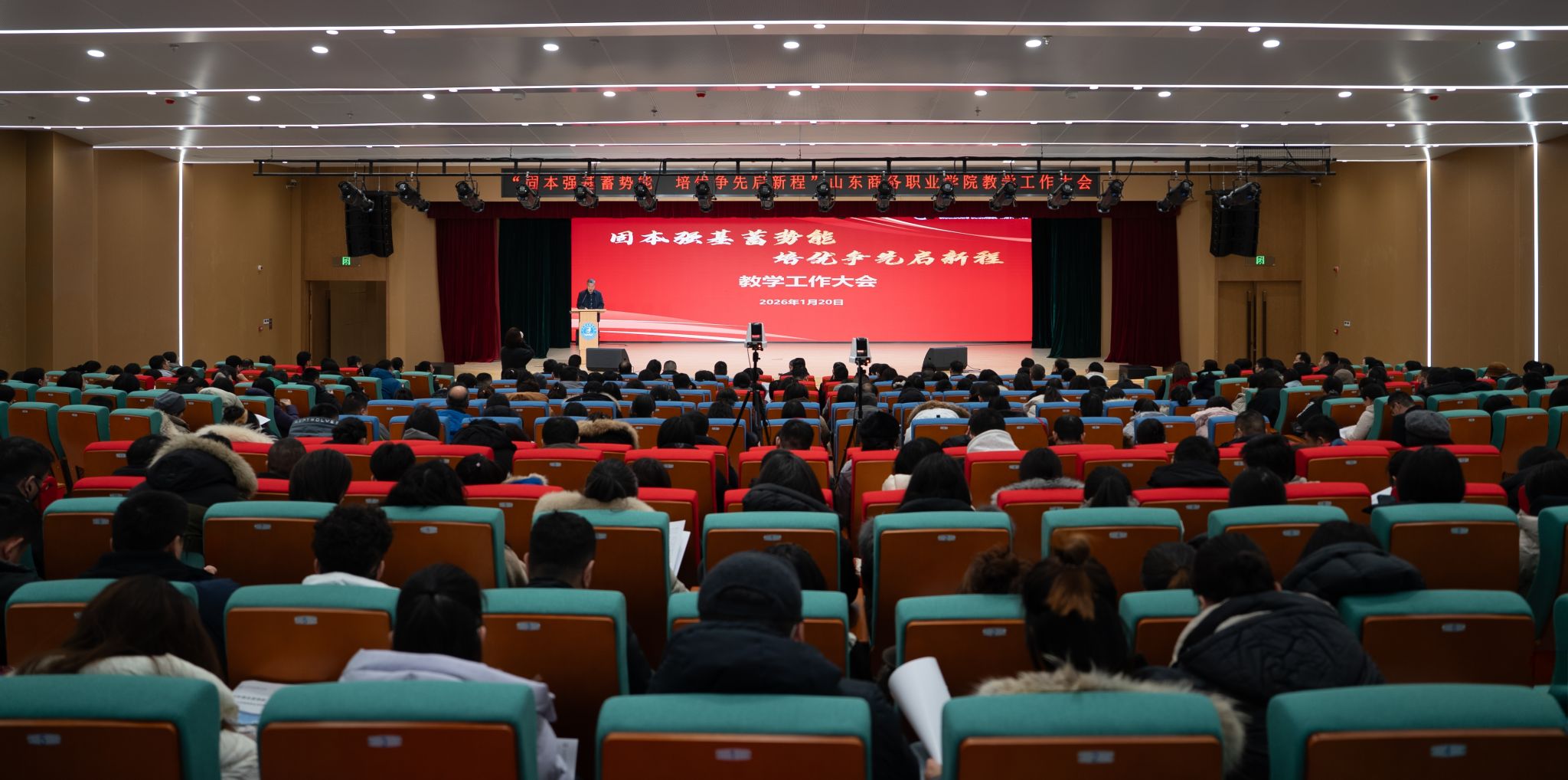 本站讯 1月20日,学校召开教学工作大会。校领导孙云茂、王发明、魏才奎、于邢香、孙玉林、邵军、孙芹宝出席会议,教务处、校企合作与就业工作处、教师发展中心副科级以上干部,各二级院部副科级以上干部、专业带头人、课程负责人、全体专任教师参加会议,会议由党委副书记、校长王发明主持。