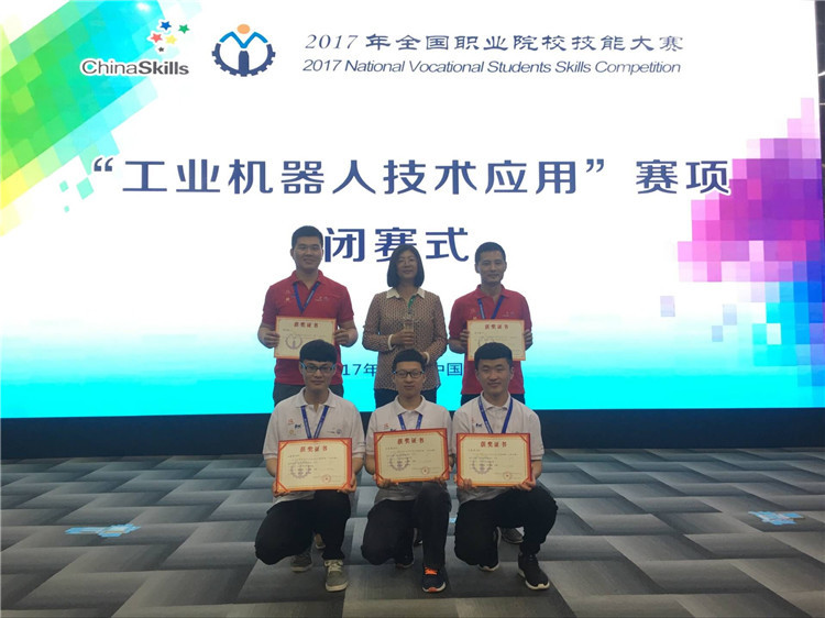 本站讯 5月11日上午11时,从全国职业院校技能大赛天津赛场传来喜讯,我校机电工程系代表队以全国总分第一名的成绩勇夺“工业机器人技术应用”赛项一等奖,这也是我校今年国赛代表队取得的第一枚沉甸甸的“金牌”。消息传来,全校师生欢呼雀跃,纷纷竖起大拇指点赞“真牛”,“商务,我为你骄傲”!