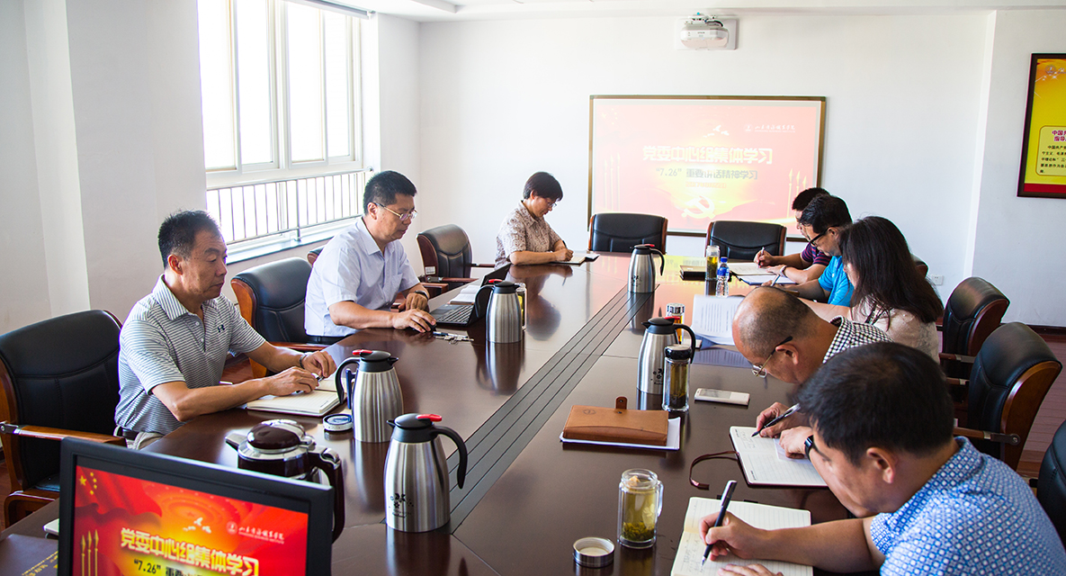 8月22日,学校党委中心组举行专题学习会议,深入学习贯彻习近平总书记7月26日在省部级主要领导干部专题研讨班上的重要讲话精神。会议由学校党委书记耿建敏主持,中心组全体成员参加学习。