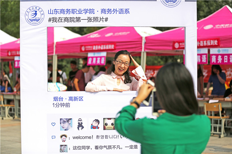 同时,学生处(团委)、各系部和学生社团在迎新现场纷纷使出看家本领,开展系列特色创意迎新活动。新生“寻宝”识校园、我与商务的第一张合影等活动,惹火新生朋友圈,萌新参与热情空前高涨。“开学一口甜”、“真人版通知书”、“校园迷你手绘地图”、“新生留言板”、“学习协会作品展”、“写给未来”等精心策划构思的系部文化活动,缓解了新生入校的紧张陌生感,使他们熟悉了解校园和系部文化,快速融入商务大家庭。