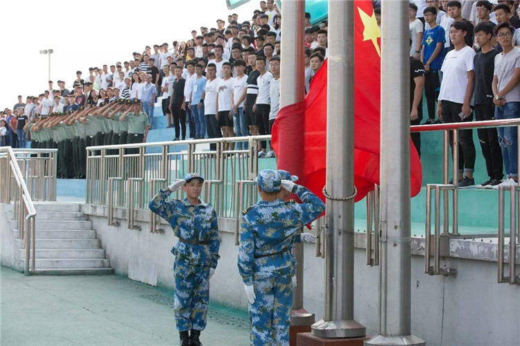 全场起立合唱《团结就是力量》,2017级新生军训结业典礼在阵阵掌声中圆满落下帷幕。