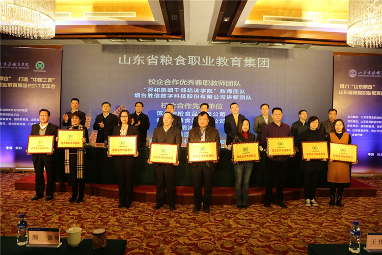 本次会议主题为“铸力‘山东粮仓’,打造‘中国工匠’”,共有来自全国60多家单位的近百名代表参加会议,会议分为两个阶段举行。会上,山东省教育厅领导授予我校牵头的山东省粮食职教集团为“山东省骨干职业教育集团”荣誉奖牌,对2017年度集团校企合作先进单位、团体、个人进行表彰。审议并通过了《山东省粮食职业教育集团资源共享实施办法》等四个办法。