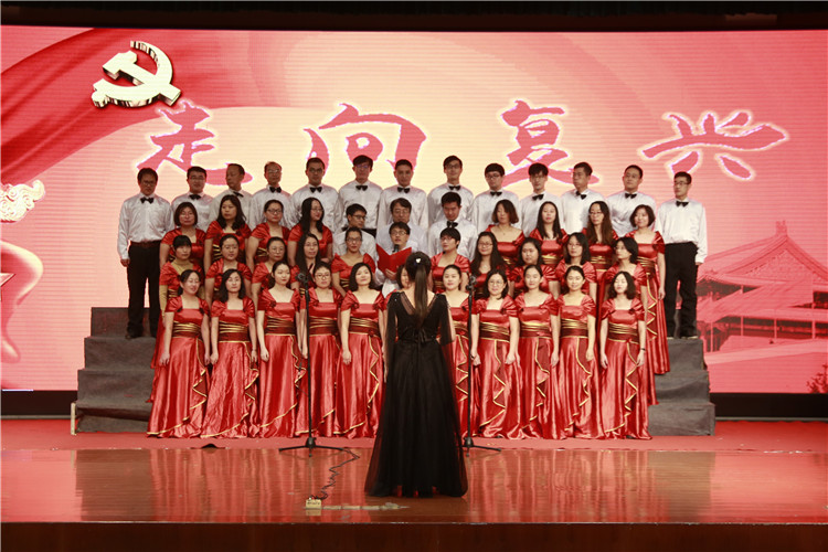 不忘初心跟随党的脚步,牢记使命奏响时代强音。食品工程系党总支合唱队带来的《走进新时代》,揭开了本次合唱比赛的序幕;商务外语系党总支合唱队的《没有共产党就没有新中国》,一首传唱半个多世纪的经典老歌,商务教师演绎的唯美入心,不少观众禁不住合唱打拍;经济管理系党总支合唱队带来的《走向复兴》,嘹亮歌声仿佛仍在耳边回荡,对祖国美好未来和学校蓬勃发展的寄语祝福温暖感动全场;一首《祝福祖国》,基础思政党总支合唱队优美倾心的演唱领唱、生动灵活的指挥,表达了团队成员祝福祖国昌盛、人民安居乐业的美好心愿;机关党总支第二合唱队的《国家》掀起现场高潮,听众敛声屏气静心欣赏,不忍破坏令人沉醉的声音和画面。