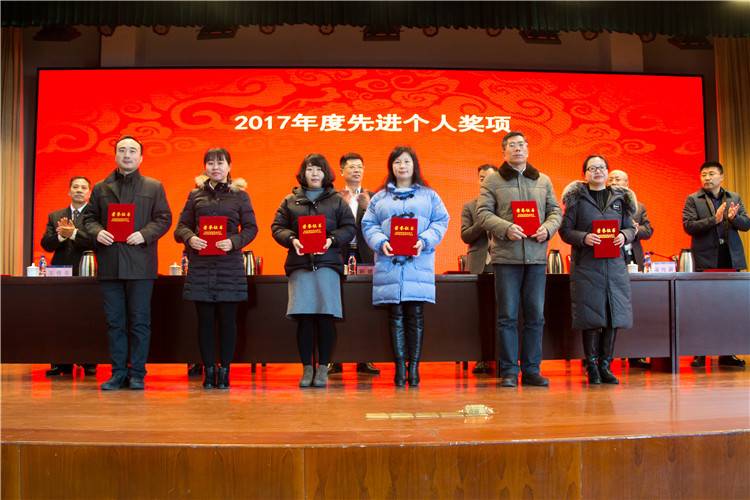 会上,副院长陶传蔚宣读了《关于表彰2017年度先进集体和先进个人的决定》的文件。学校领导为相关获奖单位和个人颁发了荣誉证书。(办公室)