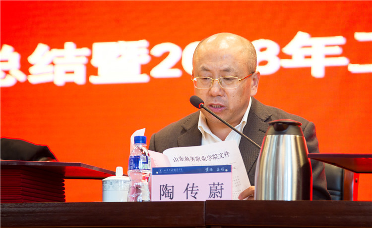 党委书记耿建敏随后发表了以《立足新时代,贯彻新思想,实现新作为,全力建设全省前列的优质高职院校》为题目的总结讲话,对做好新一年的工作提出了三点意见:
