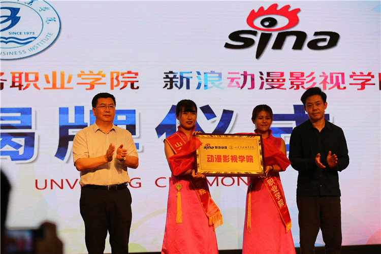 本站讯 6月27日上午10点,我校新浪动漫影视学院揭牌仪式在音乐厅隆重举行。烟台市市委宣传部副部长曲波和新浪动漫CEO、新浪动漫影视学院名誉院长孙玉芊共同为新浪动漫影视学院揭牌。新浪动漫影视学院成立,开创了我校建立混合所有制二级学院的先河,标志着我校办学模式进入更加多元化发展的新阶段。我校副院长陶传蔚主持活动。