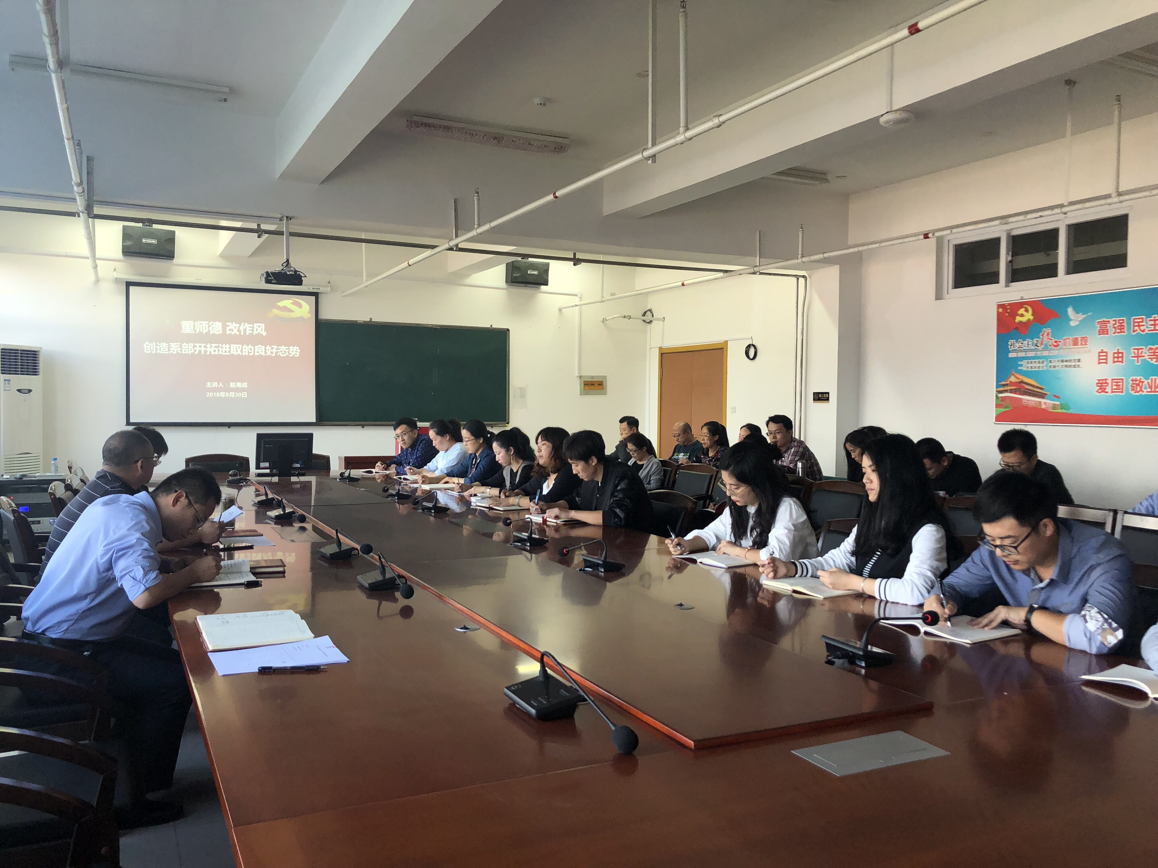 建筑工程系根据耿书记讲话提到的四个问题主要内容和五点意见主要精神,结合建筑工程系日常工作和发展现状,在全体教师中开展研讨交流活动,形成以下共识:一是在2017年建筑工程系启动“二次创业”的基础上,进一步剖析系部发展遇到困难和瓶颈,通过“重师德改作风”主题活动,加强团结、凝心聚力,力争在质量工程建设、科研社会服务和学生教育管理等工作实现新的突破;二是要加强学习,对标先进,时刻保持“逆水行舟、不进则退”的忧患意识,紧跟社会发展和高职教育发展最新趋势,学习前沿理念,切实解决松懈、懒散等问题,推动系部工作再上新台阶;三是要弘扬师德师风,全体教师要深刻领会习总书记提出的“三寸粉笔,三尺讲台系国运;一颗丹心,一生秉烛铸民魂”,增强教师职业荣誉感和使命感,以重师德改作风为引领,扎扎实实做事,认认真真育人,以优异地教育教学质量检验作风建设的成果。(王晓萌)