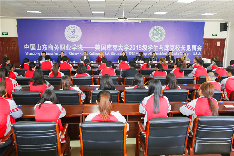 本站讯 10月23日,美国库克大学校长艾米.史都瑞女士、副校长马克.皮特里先生、美国库克大学中国总校区校长黄磊康博士一行来我校访问,并与我校2018级库克会计班的学生举行了见面会。学校领导杨新春、刘艳蔚,办公室以及会计系相关领导参加了会见活动。