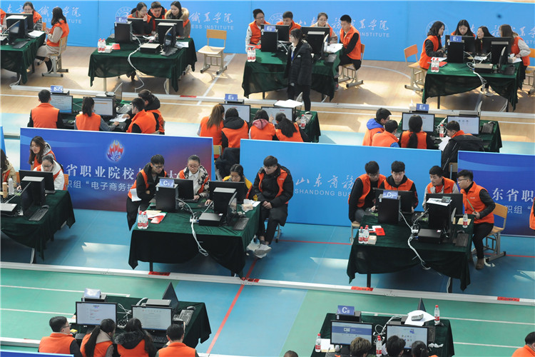 本站讯 11月10日,山东省职业院校技能大赛(高职组)“电子商务技能”赛项在山东商务职业学院体育馆拉开帷幕。本次比赛共有59所院校,236名同学报名参赛。作为该赛项第三年落地我校,今年的参赛队数量最多,规模最大,涉及最广,参赛学校层次范围包括本科院校、专科院校、中等职业学校。