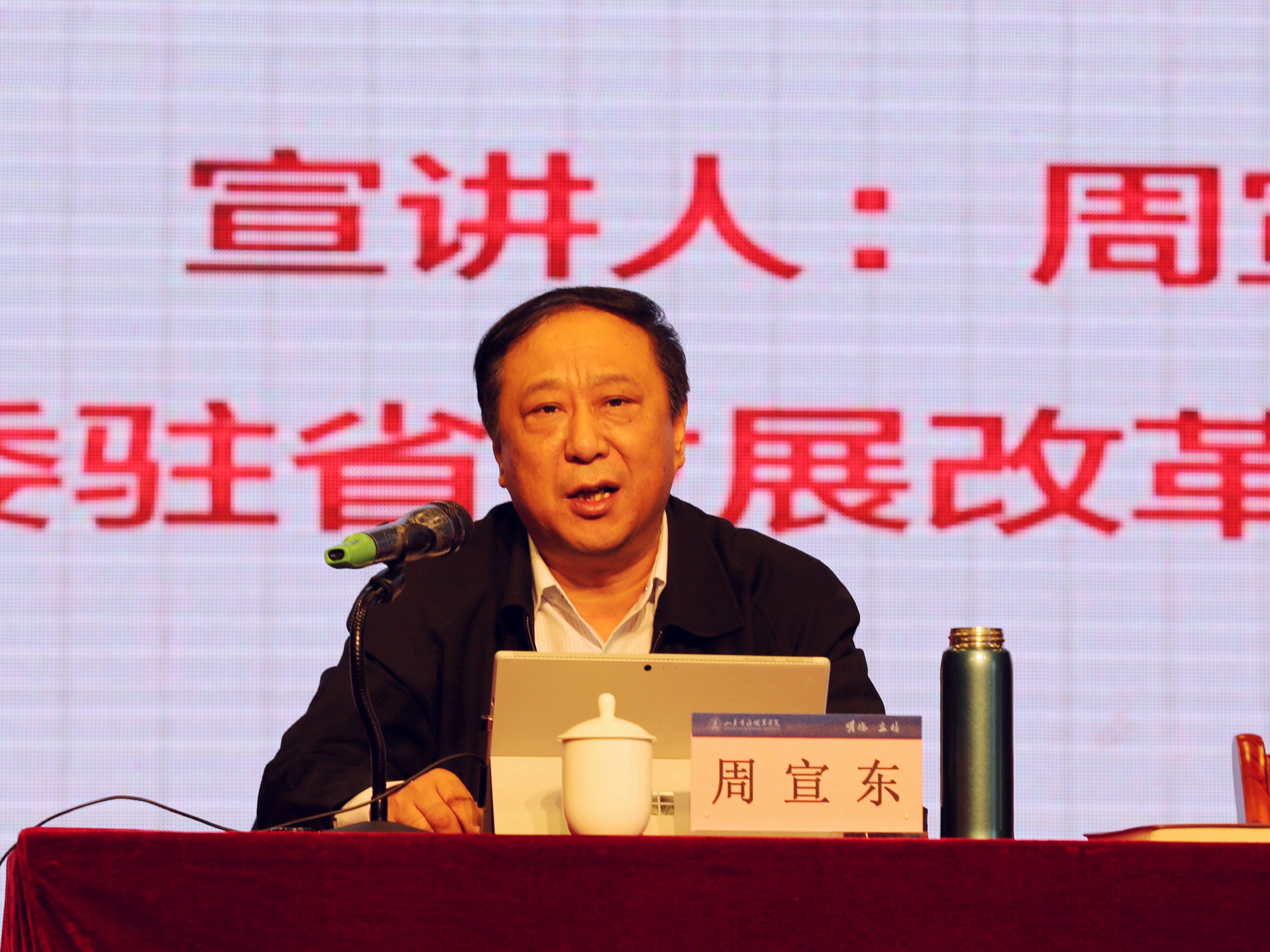 本站讯 征程万里风正劲,重任千钧再出发。2月28日上午,山东省发展和改革委员会党组成员、省纪委省监委驻省发展改革委纪检监察组组长周宣东同志,来校为全体党员干部职工作了一场题为《以习近平新时代中国特色社会主义思想为指导,不断推动全面从严治党向纵深发展》的廉政教育宣讲报告。山东省发展和改革委员会党组成员、省粮食和物资储备局党组书记、局长王伟华,省粮食和物资储备局副局长刘开田等领导同志莅临学院一同参加报告会。报告会由学院党委书记耿建敏主持。
