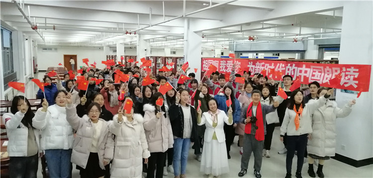 本站讯 12月17日下午,图书馆里200余名大学生挥舞着五星红旗,为祖国喝彩,为澳门庆生,共享中华民族伟大复兴的荣光!诗意书海美阅读,书海诗意朗读美!在喜迎澳门回归祖国20周年之际,山东商务职业学院图书馆里一片诗意的红色海洋!在图书馆二楼大厅的朗读亭前,全国首届节目主持人“金话筒”奖获得者、烟台市妇联“巾帼红诵“志愿者、山东商务职业学院校外人生导师刘丽老师用心灵朗读、用真情朗读,深情朗读多篇充满诗意的优秀诗歌作品,与大学生共享美好的阅读和朗读时光,共同为祖国歌唱,为中华民族讴歌,为新时代的中国朗读!