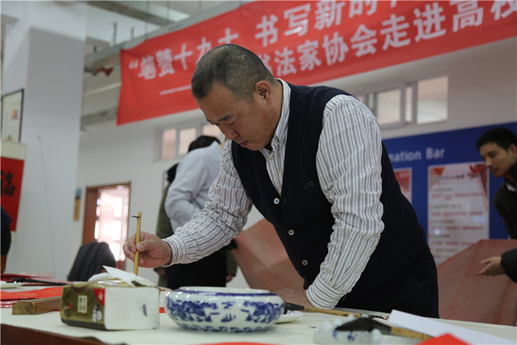 活动中,我校副院长陶传蔚表示在全国认真学习宣传十九大精神的重要时期,书法家们相聚在我校,是全面贯彻习近平总书记有关系列重要讲话精神的具体体现,是传承和弘扬中华民族优秀书法文化,践行社会主义核心价值观的具体行动。
